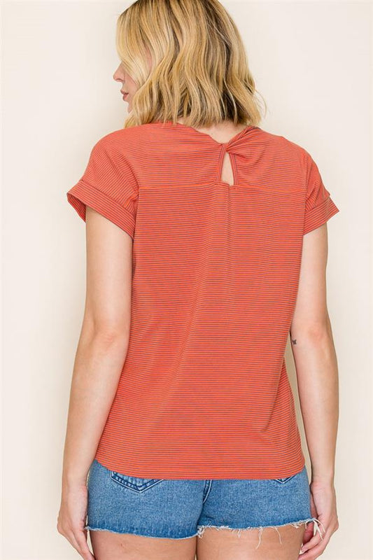 Blue Floral Balloon Sleeve Top with Keyhole Back