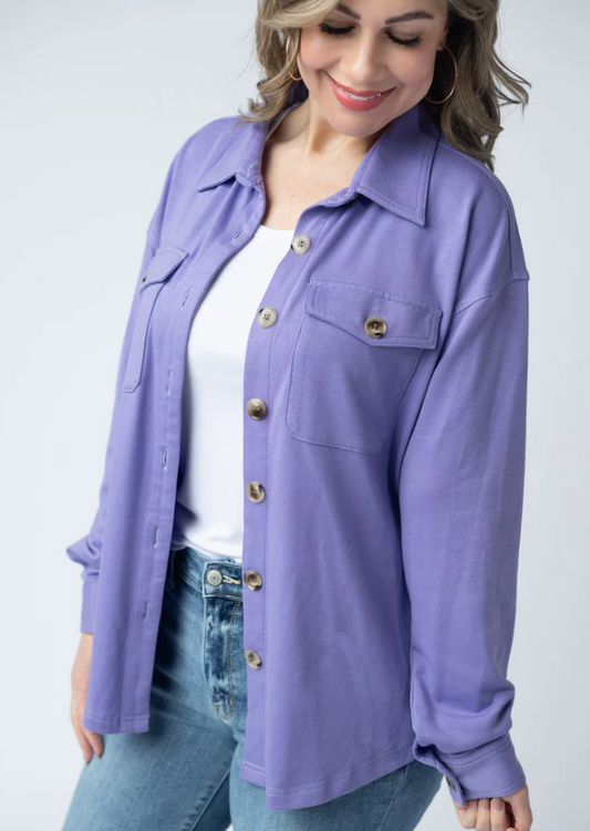 Purple 2Fer Layered V-Neck Button Down Sweater Cardigan
