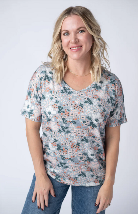Chambray Blue Short Sleeve Crew Neck Sweater