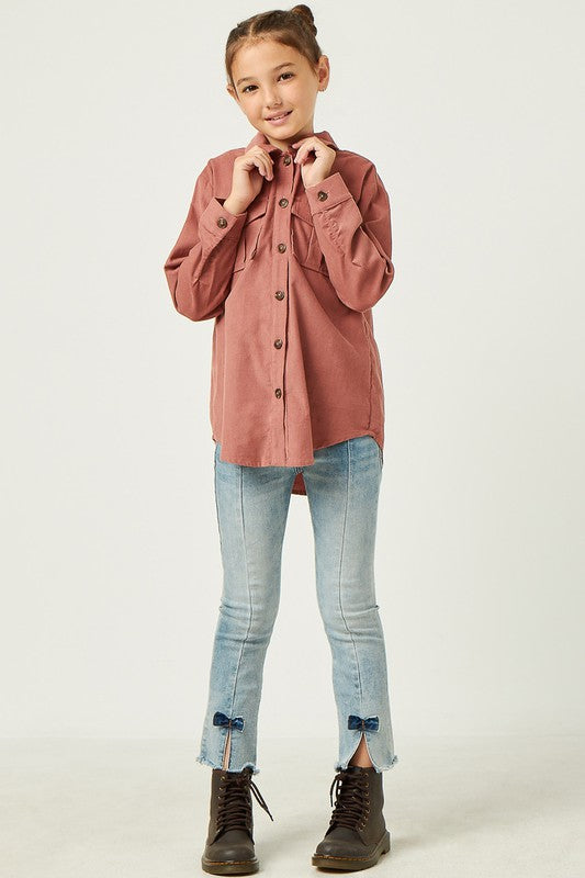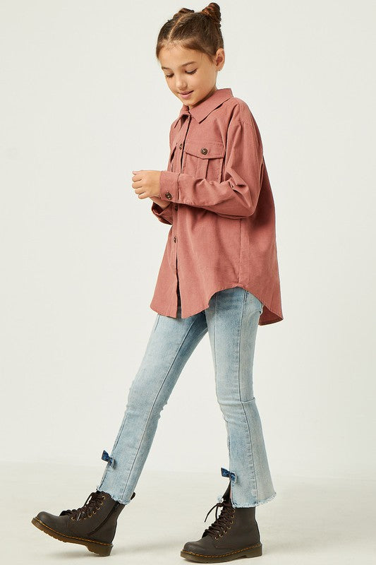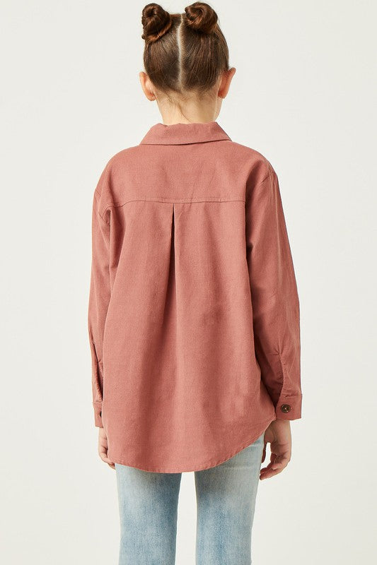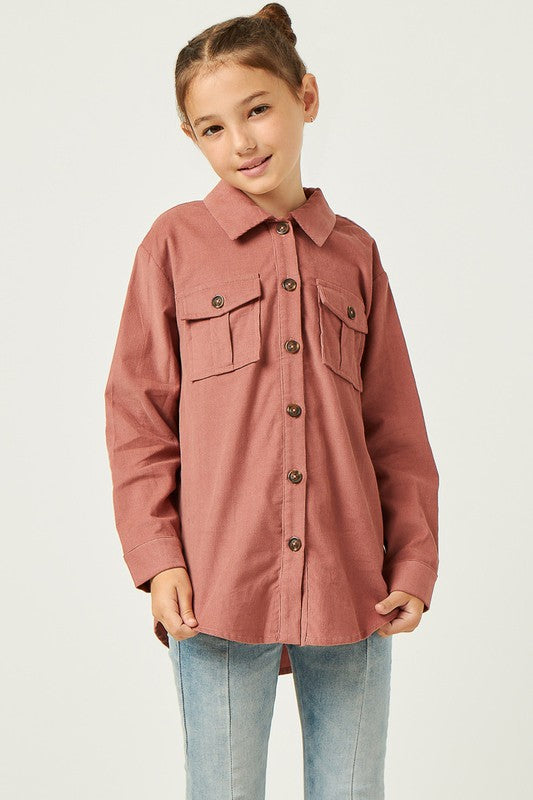 Girls Corduroy Patch Pocket Button Up Shirt