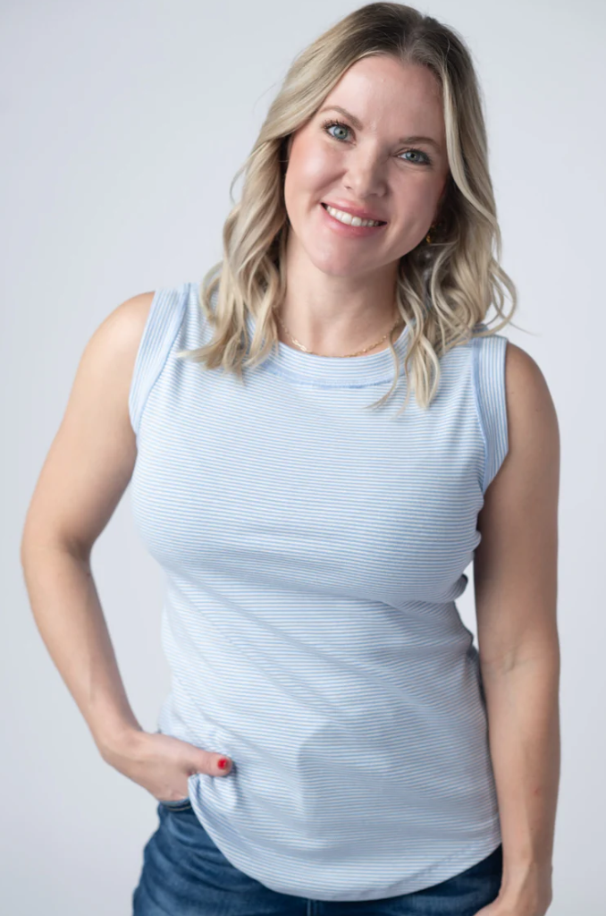 Get ready to fall in love with your newest favorite tank. The Morgan features charming micro stripes that add visual interest without overwhelming your look. Exposed stitching on the trim gives it an artisanal touch, while the fitted silhouette flatters your frame perfectly. Lightweight and breathable, it's your go-to piece for spring and summer days when you want effortless style with personality.