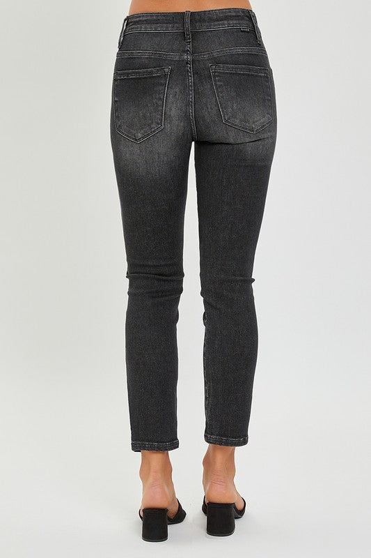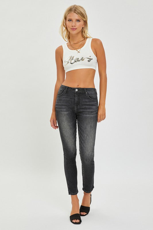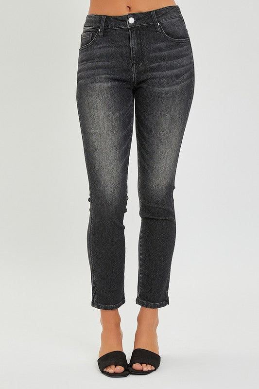 Risen Mid Rise Side Slit Ankle Skinny Jeans